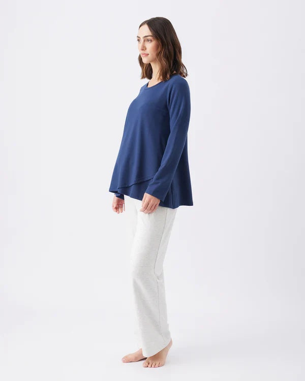 The Hailey Nursing Top is your new favorite go-to for comfort and charm. Made from a soft, stretchy blend, its semi-fitted shape hugs you just right while the clever cross-over front makes nursing a breeze. With a cozy terry back and a chic round neckline, Hailey keeps you stylishly ready for any feeding moment.