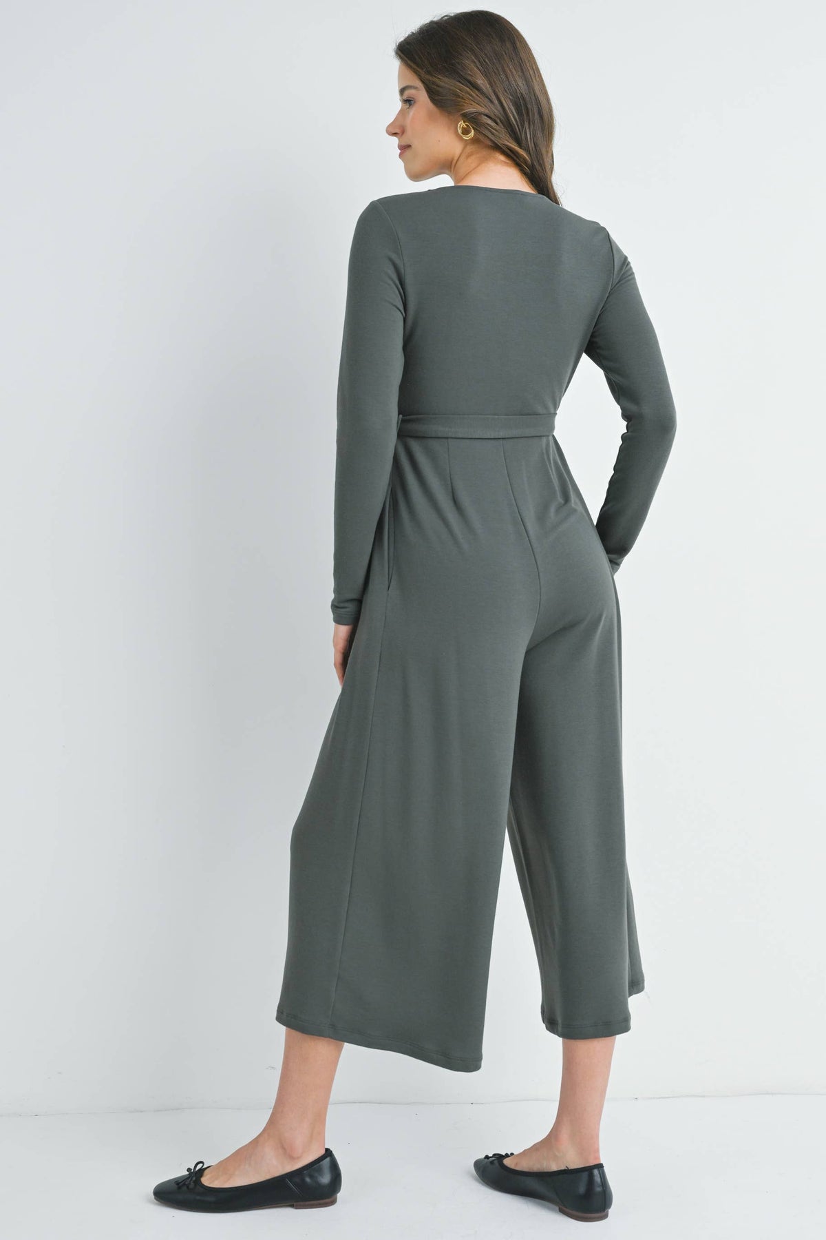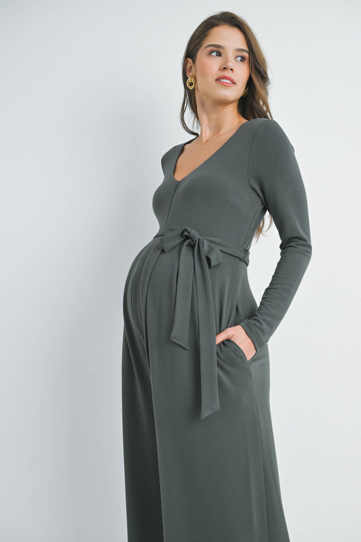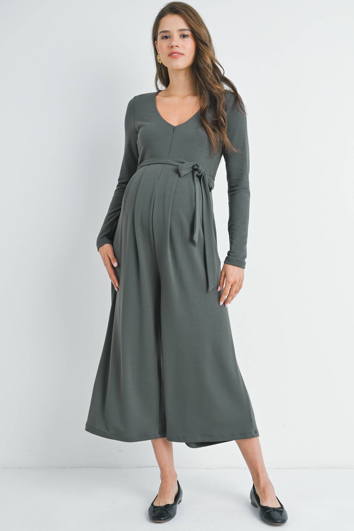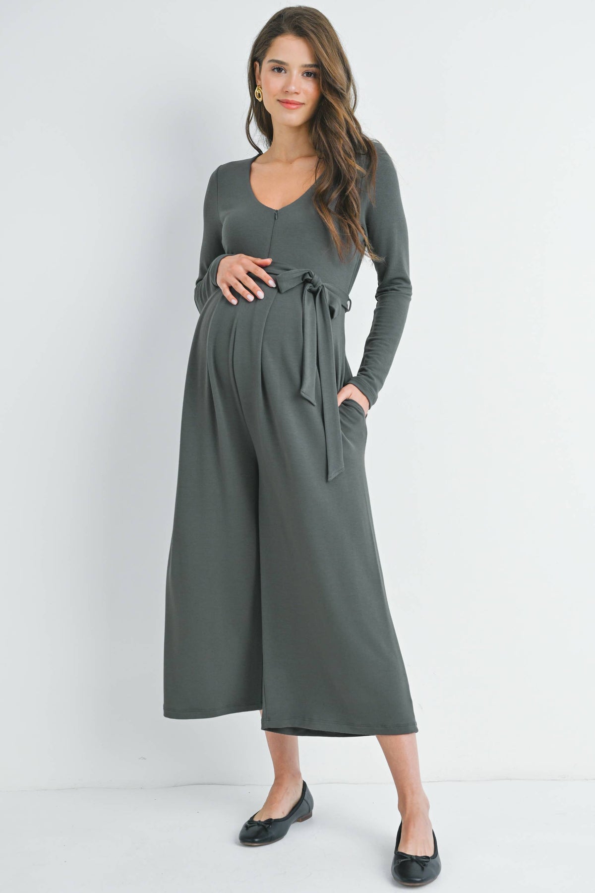 Step into comfort and style with the Verity maternity nursing jumpsuit. Featuring a zip-up front for easy nursing access, long sleeves, and a flattering belted waist, this capri-length jumpsuit lets you move freely while looking effortlessly chic. Side pockets add a practical touch, perfect for keeping your essentials close during those busy days. Embrace cozy convenience with a playful twist!